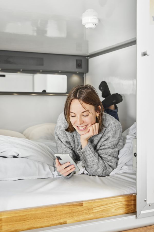 Imagine having your own snug space, kind of like a little home within a home. Our capsules are all about that personal touch. Need a bathroom break? No worries! We've got shared ones right around the corner, keeping things super convenient.